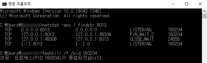 | 윈도우 커맨드창에서 톰캣서버 죽이기 (0) | 2023.07.14 |